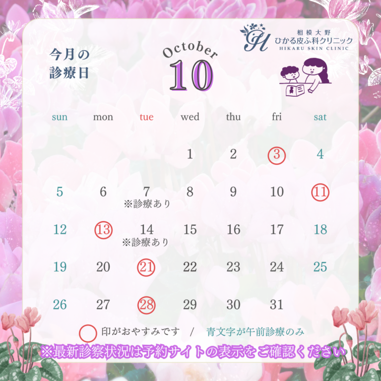 10月はイレギュラーが増えてしまいましたので、受診の際ご確認の程何卒よろしくお願い申し上げます。