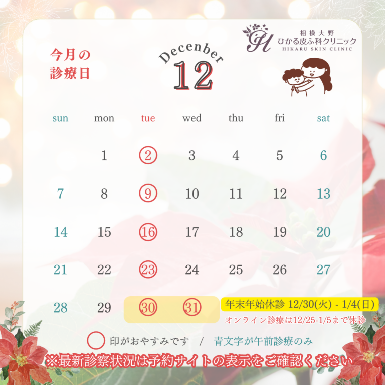 オンライン診療は 12月25日(木)~1月5日(月)まで休診させていただきます。